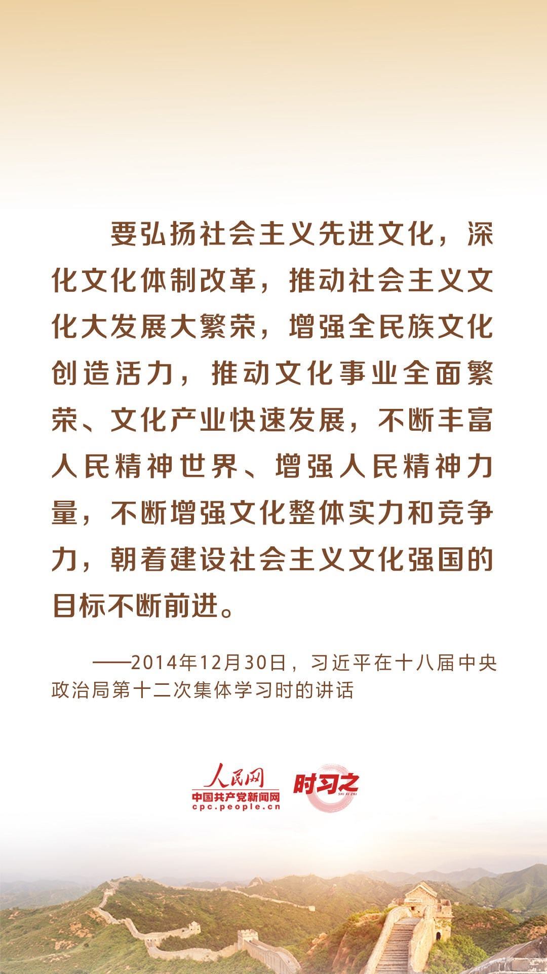 “理論自覺、文化自信,是一個(gè)民族進(jìn)步的力量;價(jià)值先進(jìn)、思想解放,是一個(gè)社會(huì)活力的來源?!秉h的十八大以來,習(xí)近平總書記就文化建設(shè)提出了一系列新理念新思想新戰(zhàn)略,引領(lǐng)中華文化創(chuàng)造性轉(zhuǎn)化、創(chuàng)新性發(fā)展。推動(dòng)弘揚(yáng)和發(fā)展社會(huì)主義先進(jìn)文化,習(xí)近平多次作出重要闡釋。