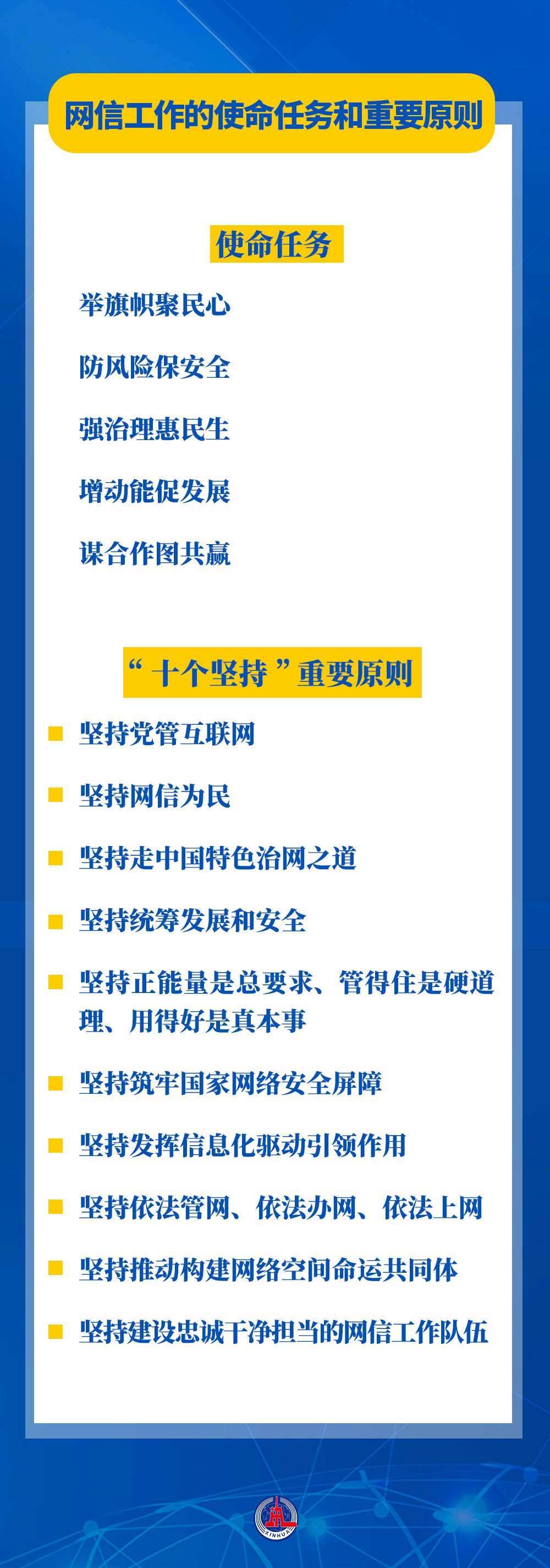 習(xí)近平總書記鮮明提出的網(wǎng)信工作“5個方面、30個字”的使命任務(wù),涵蓋互聯(lián)網(wǎng)內(nèi)容建設(shè)、網(wǎng)絡(luò)安全、網(wǎng)絡(luò)惠民、信息化建設(shè)、國際網(wǎng)絡(luò)空間治理等,“十個堅持”重要原則進一步豐富和發(fā)展了習(xí)近平總書記關(guān)于網(wǎng)絡(luò)強國的重要思想,把黨對網(wǎng)信工作的規(guī)律性認識提升到全新高度??倳浱岢龅氖姑蝿?wù)和重要原則,具有很強的政治性、戰(zhàn)略性、指導(dǎo)性,既著眼當(dāng)前,又謀深慮遠,為做好新時代新征程網(wǎng)信工作指明了前進方向,為推進實現(xiàn)網(wǎng)絡(luò)強國提供了根本遵循。