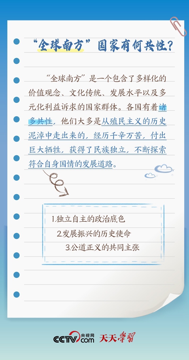 此次出訪,習(xí)近平主席在向約翰內(nèi)斯堡金磚國(guó)家工商論壇閉幕式發(fā)表致辭、同南非總統(tǒng)拉馬福薩共同會(huì)見記者等場(chǎng)合均提及“全球南方”。什么是“全球南方”?“全球南方”國(guó)家有何共性?中國(guó)為何是“全球南方”的天然成員?跟著央視網(wǎng)《天天學(xué)習(xí)》一起了解。