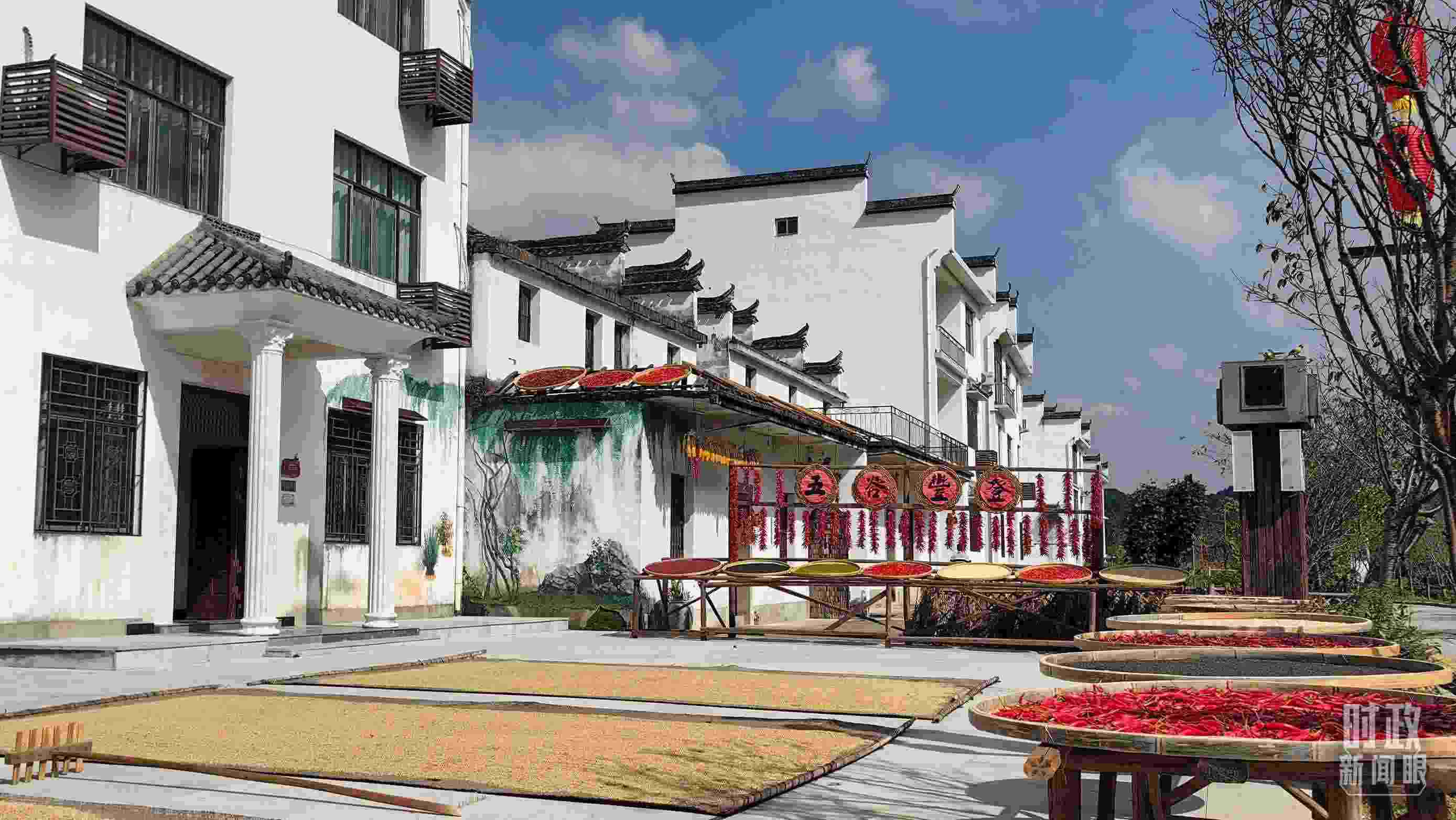 △婺源鄉(xiāng)村的曬秋農(nóng)俗。(總臺(tái)央視記者鐘銳拍攝)