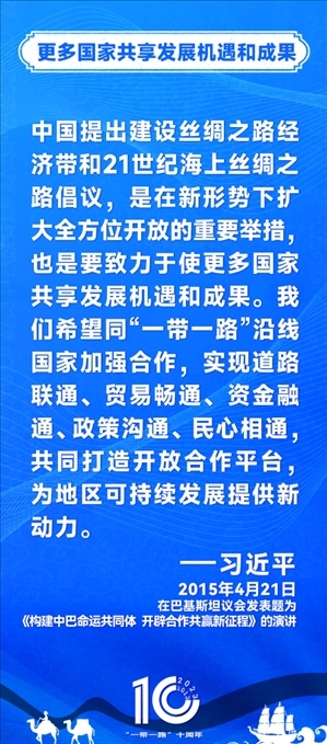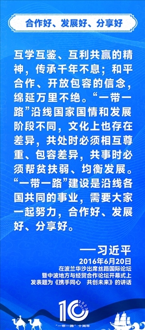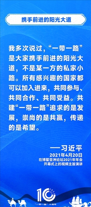 10年前,習(xí)近平主席提出共建“絲綢之路經(jīng)濟(jì)帶”和“21世紀(jì)海上絲綢之路”,即共建“一帶一路”倡議。過(guò)去10年來(lái),習(xí)近平主席在多個(gè)場(chǎng)合發(fā)表講話(huà)和署名文章,為世界描繪了共建“一帶一路”互聯(lián)互通、合作共贏的宏偉藍(lán)圖。