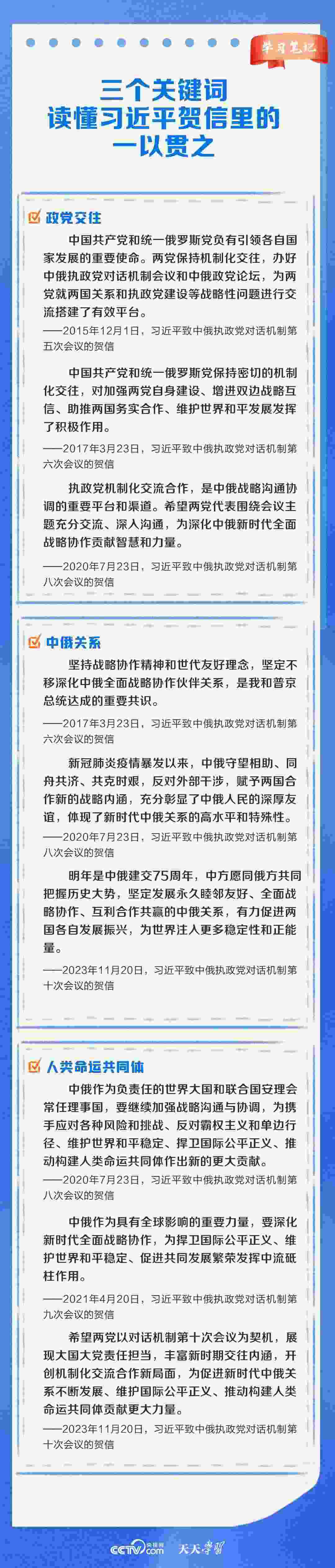 11月20日,中俄執(zhí)政黨對(duì)話機(jī)制第十次會(huì)議以視頻方式舉辦。習(xí)近平總書(shū)記同普京總統(tǒng)分別向會(huì)議致賀信。習(xí)近平總書(shū)記在賀信中強(qiáng)調(diào),中俄執(zhí)政黨對(duì)話機(jī)制已發(fā)展成為兩國(guó)鞏固政治互信、密切戰(zhàn)略協(xié)作、推進(jìn)互利合作的獨(dú)特渠道和平臺(tái)。