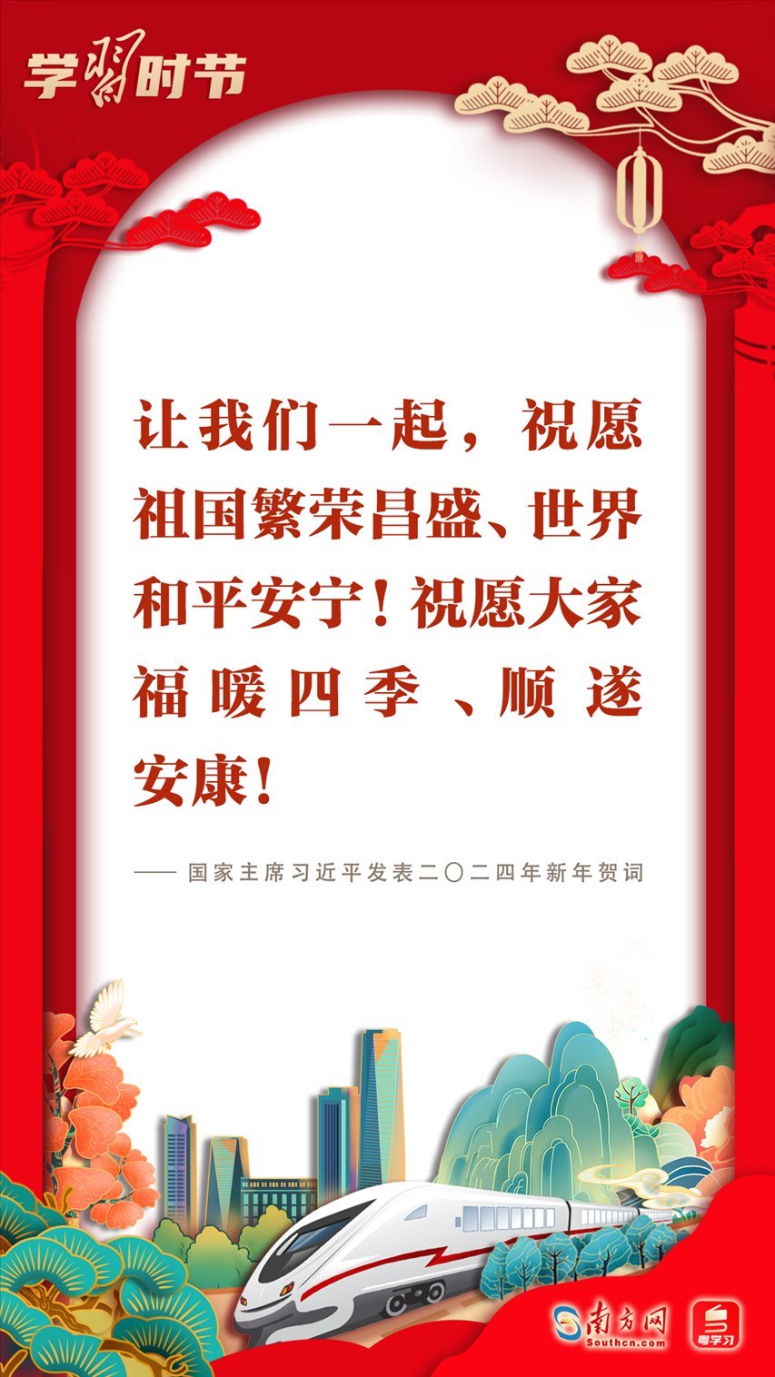 2023年12月31日晚,國(guó)家主席習(xí)近平在北京發(fā)表二〇二四年新年賀詞。賀詞飽含對(duì)廣大人民群眾的深情,彰顯對(duì)中國(guó)發(fā)展的堅(jiān)定信心?;厥走^(guò)往,展望未來(lái);砥礪前行,征程再起。讓我們一起在習(xí)近平主席的新年賀詞中感受直抵心靈的溫暖、催人奮進(jìn)的力量!