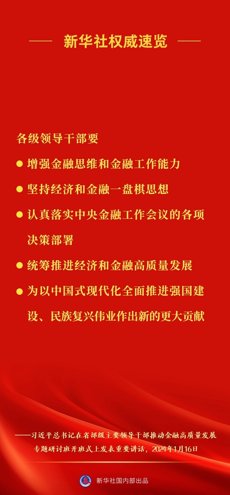 習(xí)近平總書記16日上午在省部級主要領(lǐng)導(dǎo)干部推動金融高質(zhì)量發(fā)展專題研討班開班式上發(fā)表重要講話,一起來看講話要點。
