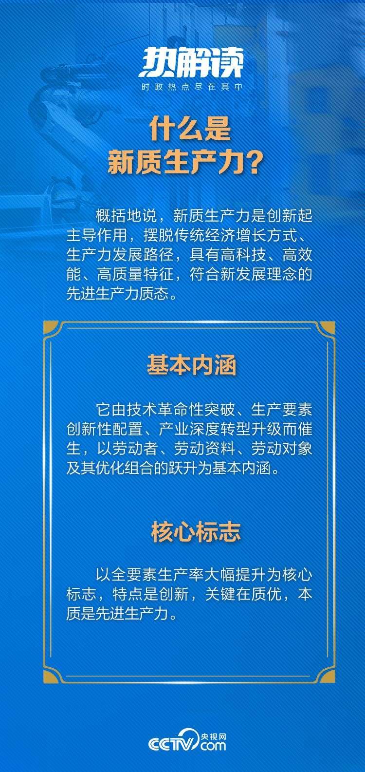 在這次集體學習中,習近平總書記首次全面系統(tǒng)闡釋了新質生產力的重要概念和基本內涵,并就如何推動新質生產力加快發(fā)展提出明確指引,要求“必須繼續(xù)做好創(chuàng)新這篇大文章”。