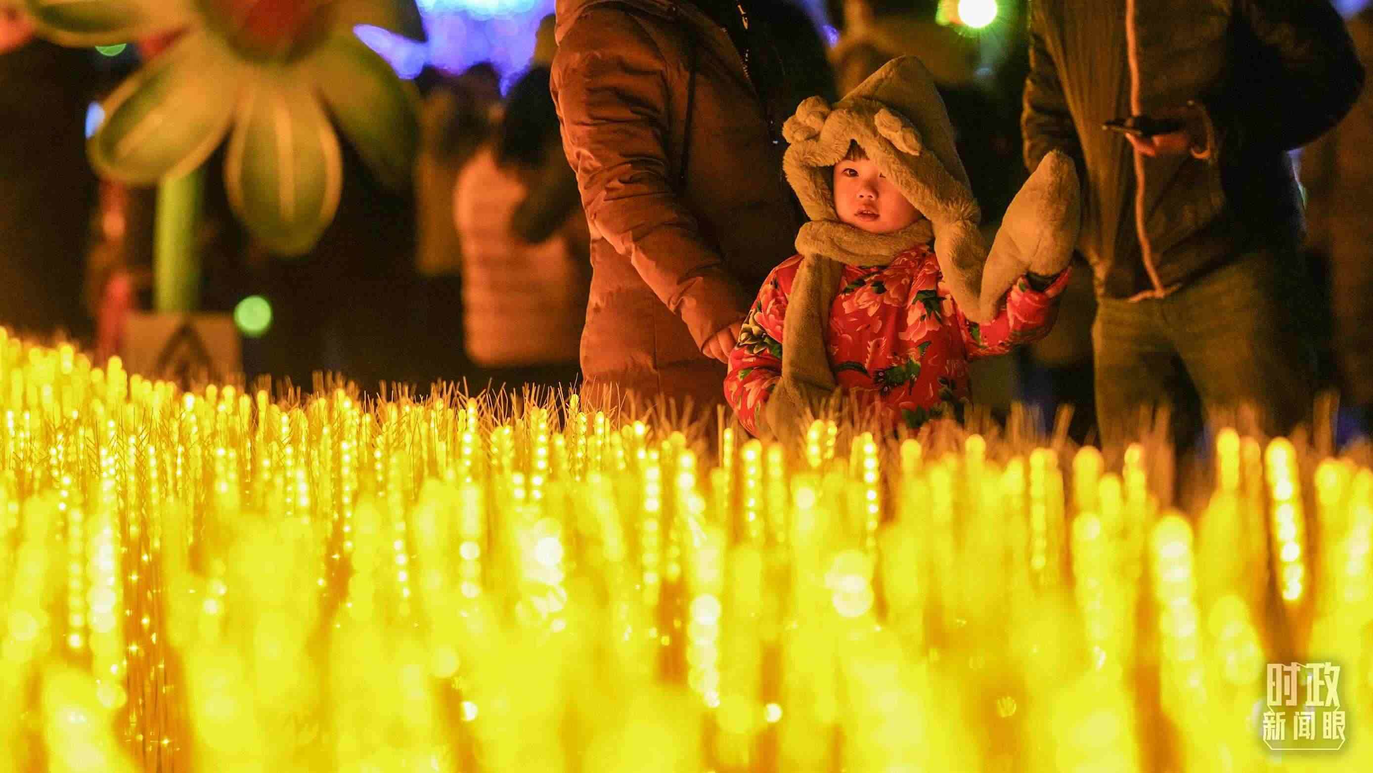 △夜幕降臨,天津市民紛紛來到楊柳青鎮(zhèn)觀花燈、迎新春。(總臺國廣記者李晉拍攝)