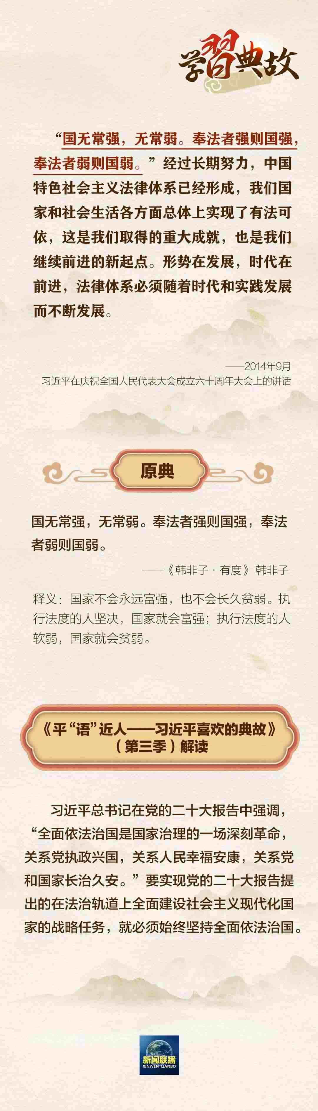 黨的二十大報告將法治建設(shè)單獨作為一個部分進行專章論述、專門部署,這充分體現(xiàn)了以習(xí)近平同志為核心的黨中央對法治建設(shè)的高度重視。圍繞“全面依法治國”這一主題,總書記曾講到哪些典故?一起學(xué)習(xí)↓↓↓