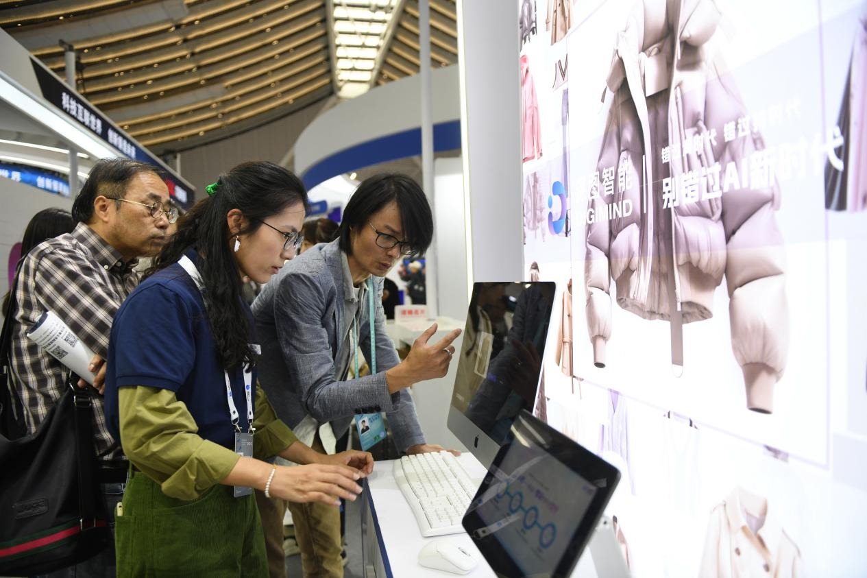 △ 2023年11月9日,“互聯(lián)網(wǎng)之光”博覽會上,人工智能服裝設(shè)計(jì)技術(shù)吸引參觀者駐足體驗(yàn)。