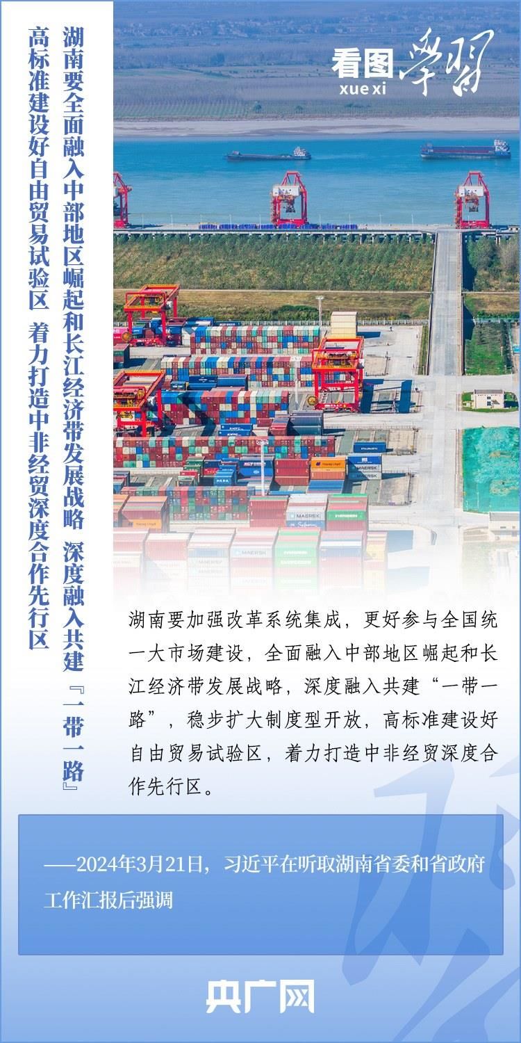 3月18日至21日,習(xí)近平總書記考察湖南長沙、常德等地,深入學(xué)校、企業(yè)、歷史文化街區(qū)、鄉(xiāng)村等進(jìn)行調(diào)研??倳洀?qiáng)調(diào),湖南要牢牢把握自身在構(gòu)建新發(fā)展格局中的戰(zhàn)略定位,堅(jiān)持穩(wěn)中求進(jìn)工作總基調(diào),堅(jiān)持高質(zhì)量發(fā)展不動搖,堅(jiān)持改革創(chuàng)新、求真務(wù)實(shí),在打造國家重要先進(jìn)制造業(yè)高地、具有核心競爭力的科技創(chuàng)新高地、內(nèi)陸地區(qū)改革開放高地上持續(xù)用力,在推動中部地區(qū)崛起和長江經(jīng)濟(jì)帶發(fā)展中奮勇爭先,奮力譜寫中國式現(xiàn)代化湖南篇章。一起來學(xué)習(xí)!