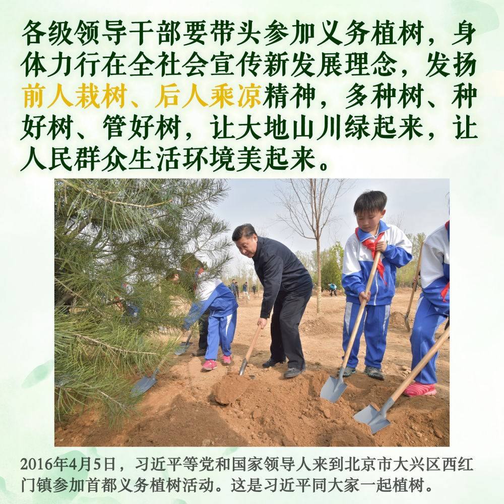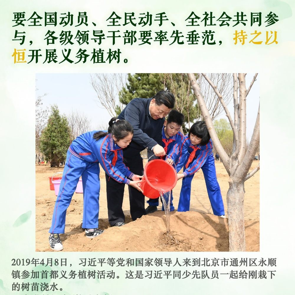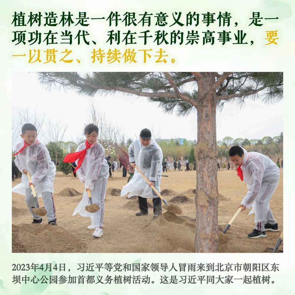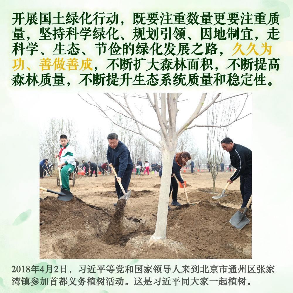 身體力行,持之以恒。此后的11個春天,無論晴雨,總書記都抽出時間加入植綠隊伍,并對國土綠化事業(yè)提出殷殷囑托。堅持,是12年來總書記反復(fù)強(qiáng)調(diào)的關(guān)鍵內(nèi)涵。