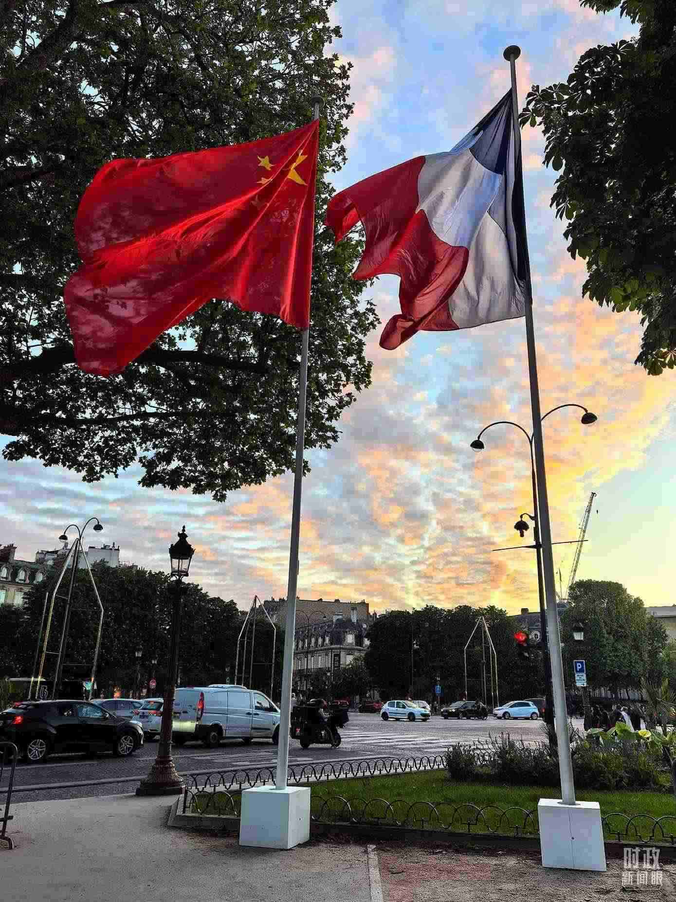 △巴黎街頭懸掛的中法兩國國旗。(總臺(tái)國廣記者吳倩拍攝)
