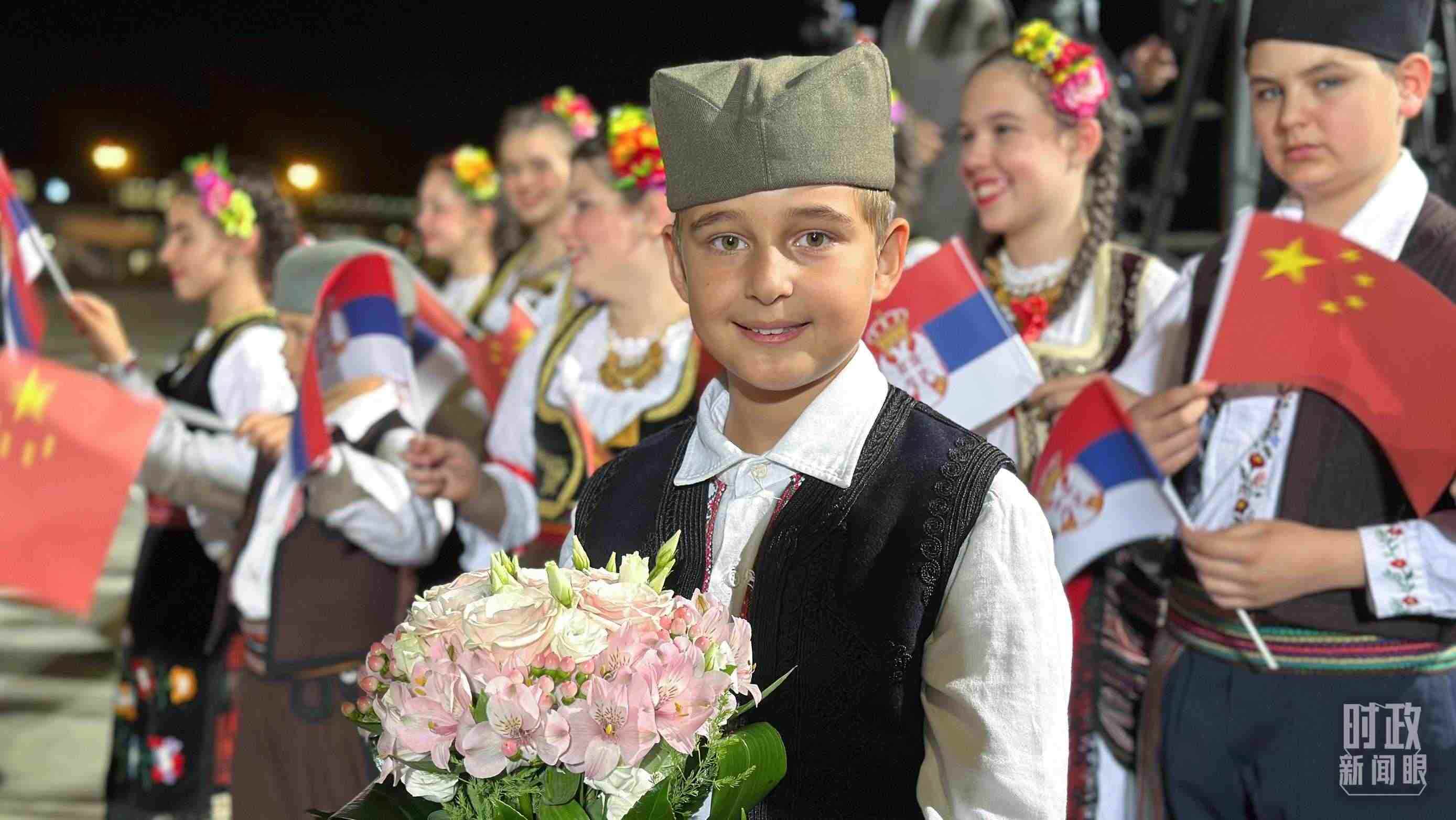 △機(jī)場迎接習(xí)主席的塞爾維亞少年。(總臺央視記者范一鳴拍攝)