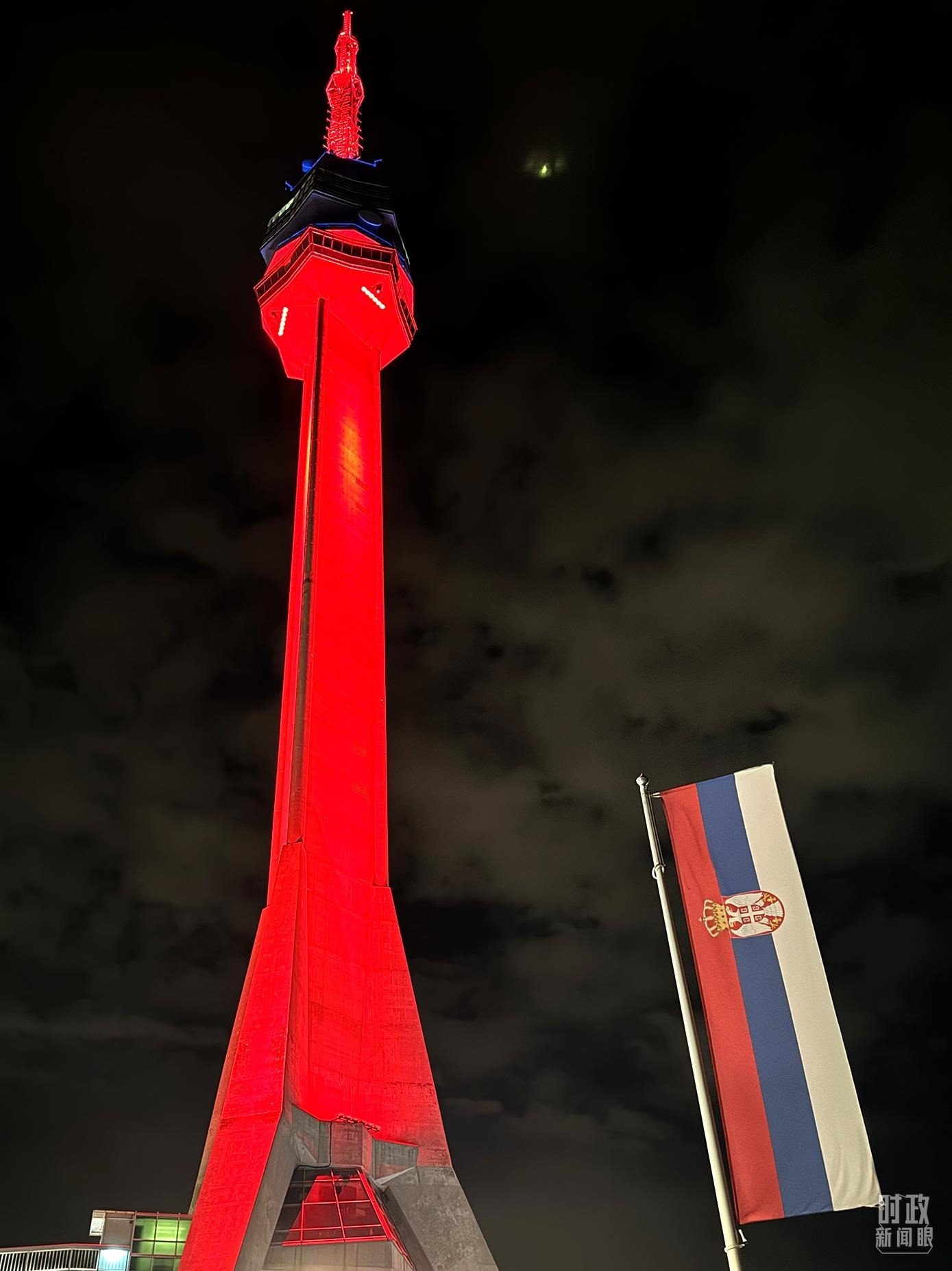 △貝爾格萊德夜晚的中國(guó)紅。(總臺(tái)央視記者李增仁拍攝)