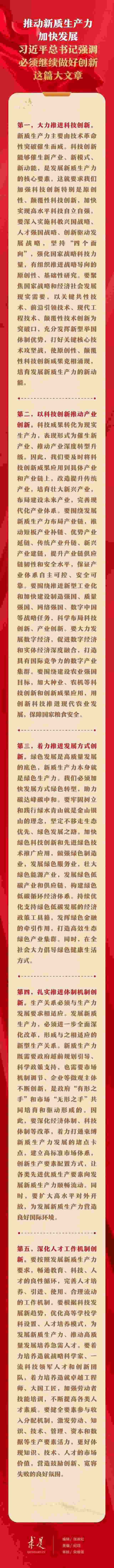 6月1日出版的第11期《求是》雜志刊發(fā)習近平總書記重要文章《發(fā)展新質(zhì)生產(chǎn)力是推動高質(zhì)量發(fā)展的內(nèi)在要求和重要著力點》。在這篇重要文章中,習近平總書記從科技創(chuàng)新、產(chǎn)業(yè)創(chuàng)新、發(fā)展方式創(chuàng)新、體制機制創(chuàng)新、人才工作機制創(chuàng)新等五個方面,對推動新質(zhì)生產(chǎn)力加快發(fā)展提出明確要求。
