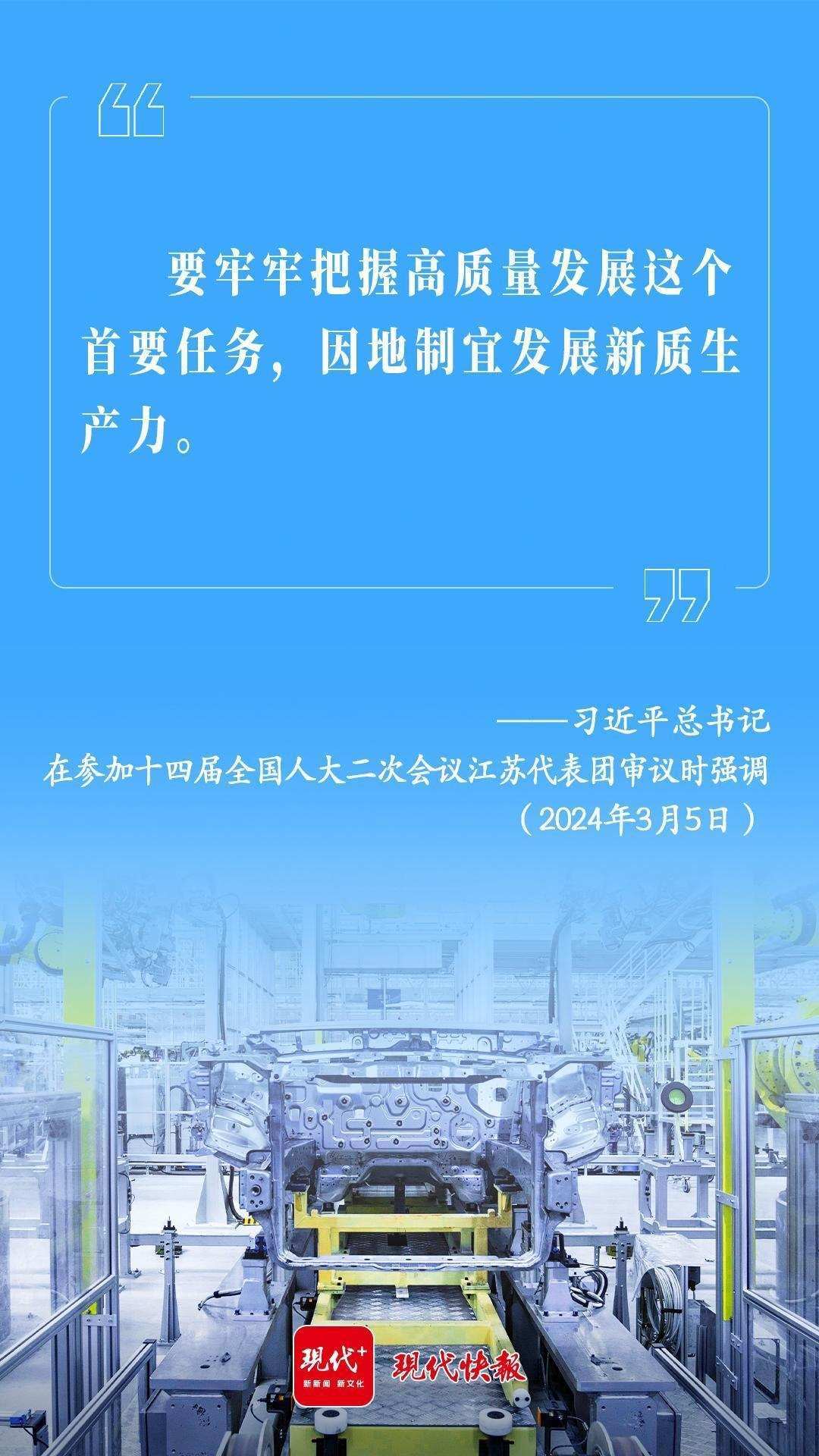 2024年3月5日,習(xí)近平總書(shū)記在參加十四屆全國(guó)人大二次會(huì)議江蘇代表團(tuán)審議時(shí)強(qiáng)調(diào):“要牢牢把握高質(zhì)量發(fā)展這個(gè)首要任務(wù),因地制宜發(fā)展新質(zhì)生產(chǎn)力。”
