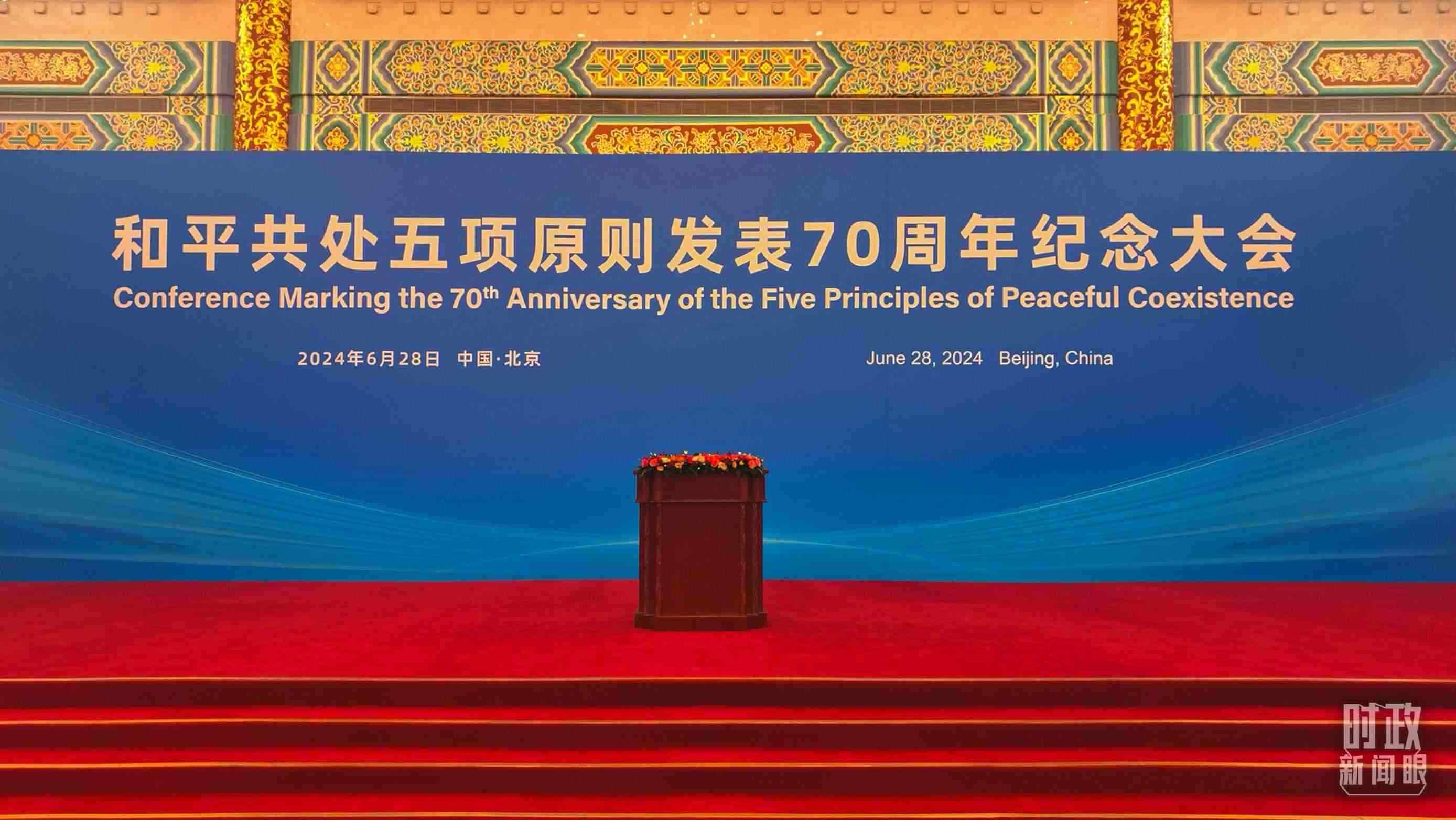 △和平共處五項(xiàng)原則發(fā)表70周年紀(jì)念大會(huì)現(xiàn)場(chǎng)。(總臺(tái)央視記者鄂介甫拍攝)