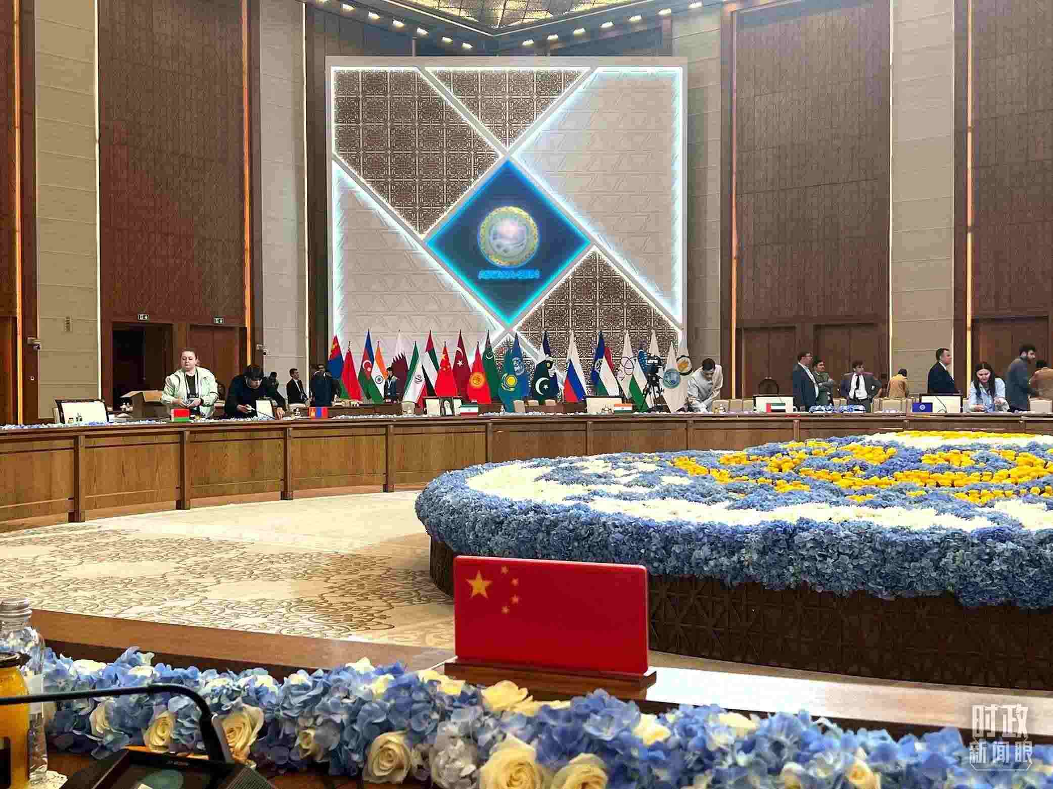 △當(dāng)天下午,“上海合作組織+”阿斯塔納峰會(huì)在這里舉行,這是會(huì)議開始前。(總臺(tái)央視記者程鋮拍攝)