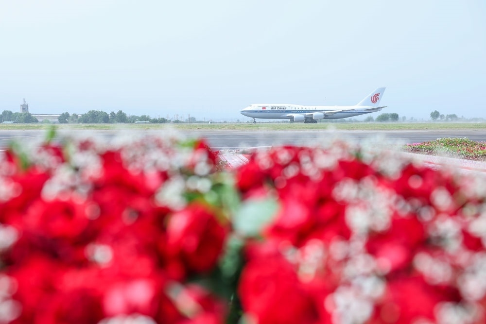 塔吉克斯坦總統(tǒng)拉赫蒙率議會(huì)上院議長(zhǎng)兼杜尚別市長(zhǎng)魯斯塔姆、外長(zhǎng)穆赫里丁到機(jī)場(chǎng)話別送行。
