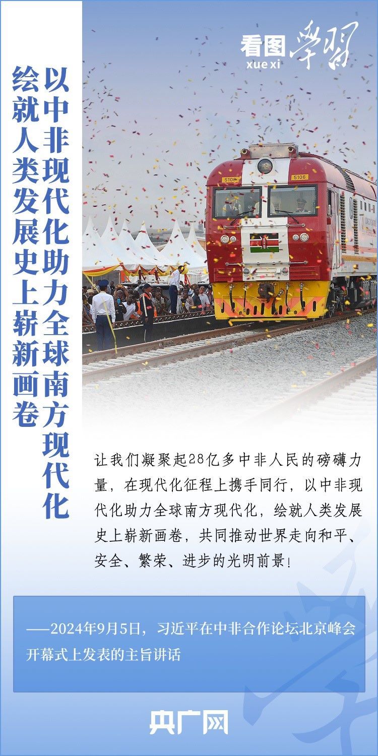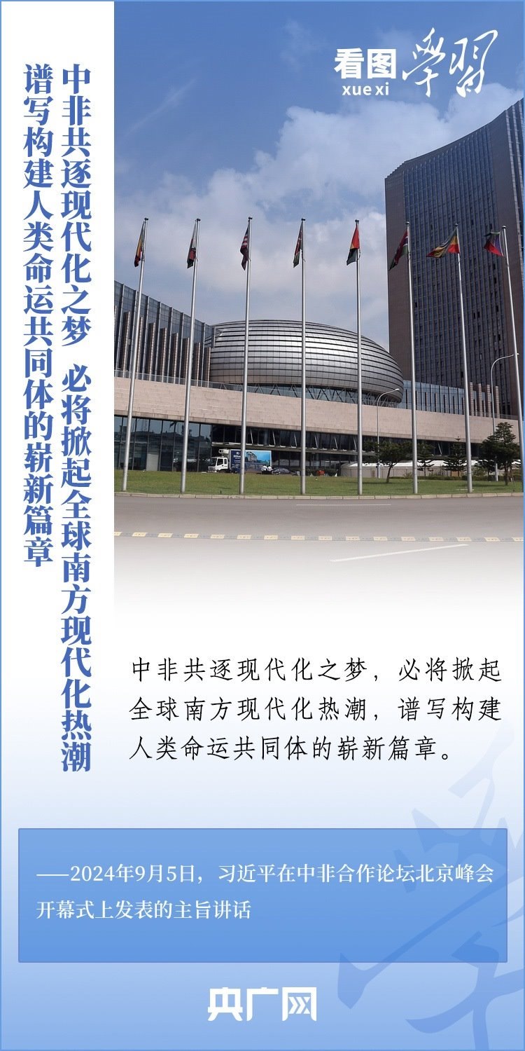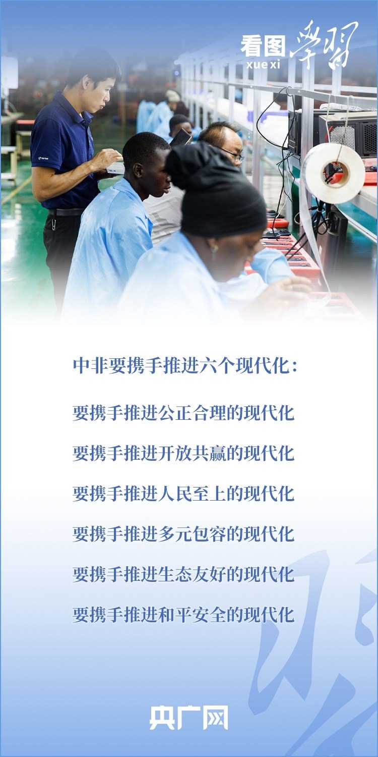“中非共逐現(xiàn)代化之夢,必將掀起全球南方現(xiàn)代化熱潮,譜寫構(gòu)建人類命運(yùn)共同體的嶄新篇章?!绷?xí)近平主席表示,中非關(guān)系正處于歷史最好時期,中非將攜手推進(jìn)六個現(xiàn)代化,并推動實(shí)施“十大伙伴行動”。一起來學(xué)習(xí)!