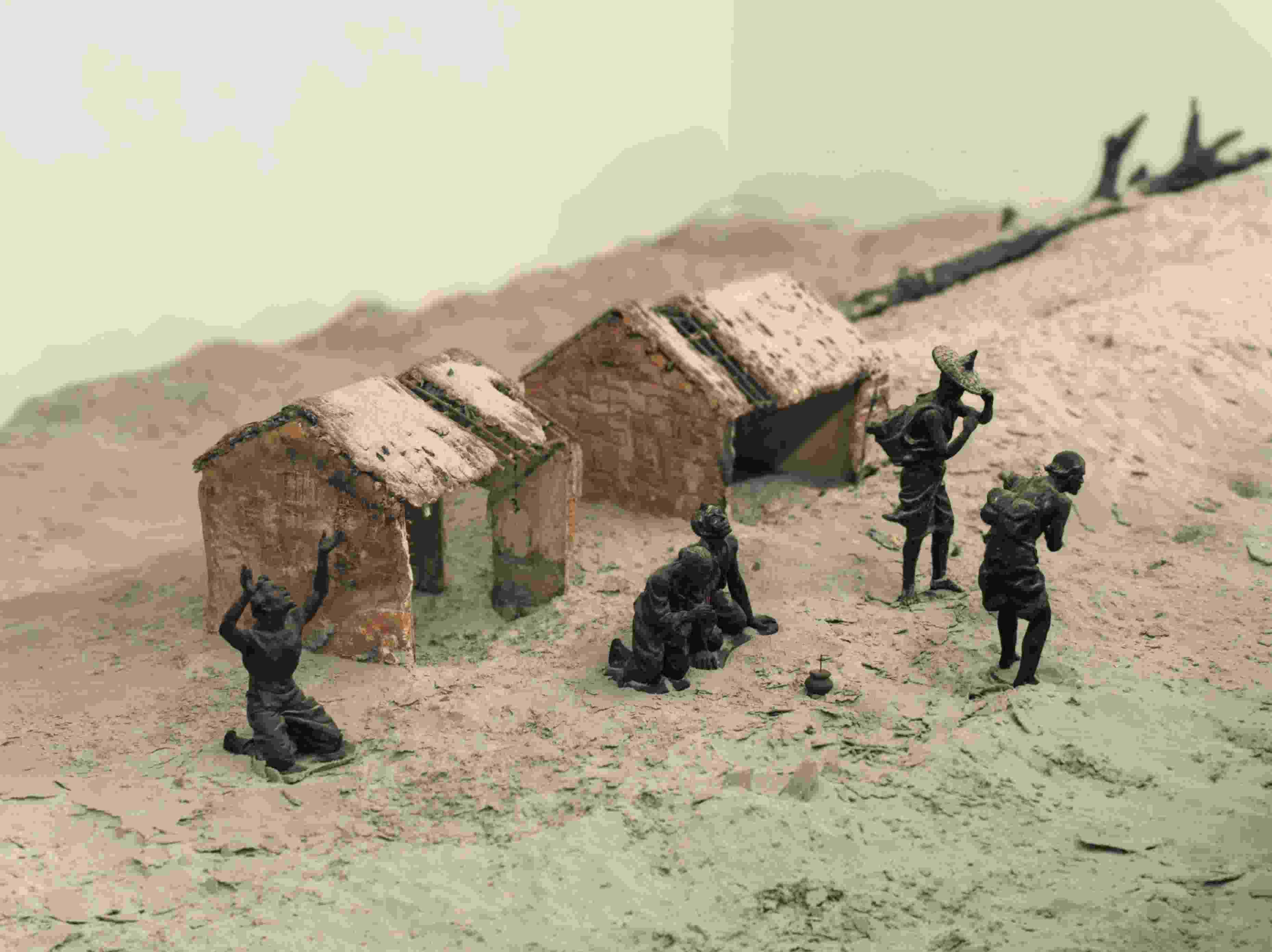 △谷文昌紀(jì)念館里展示的當(dāng)年東山人民飽受風(fēng)沙災(zāi)害之苦的情景。(總臺(tái)央廣記者潘毅拍攝)