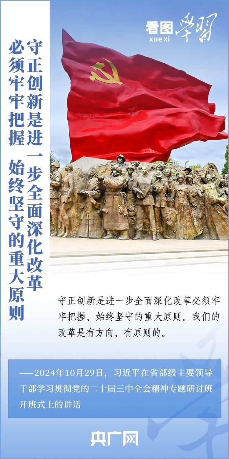 改革只有進(jìn)行時(shí),沒(méi)有完成時(shí)。10月29日,省部級(jí)主要領(lǐng)導(dǎo)干部學(xué)習(xí)貫徹黨的二十屆三中全會(huì)精神專(zhuān)題研討班在中央黨校(國(guó)家行政學(xué)院)開(kāi)班。習(xí)近平總書(shū)記發(fā)表重要講話(huà),就進(jìn)一步全面深化改革的一系列重大問(wèn)題進(jìn)行深刻闡釋?zhuān)瑥?qiáng)調(diào)要牢牢把握、始終堅(jiān)守“守正創(chuàng)新”這一重大原則,把握好“四對(duì)關(guān)系”,奮力打開(kāi)改革發(fā)展新天地。一起來(lái)學(xué)習(xí)!