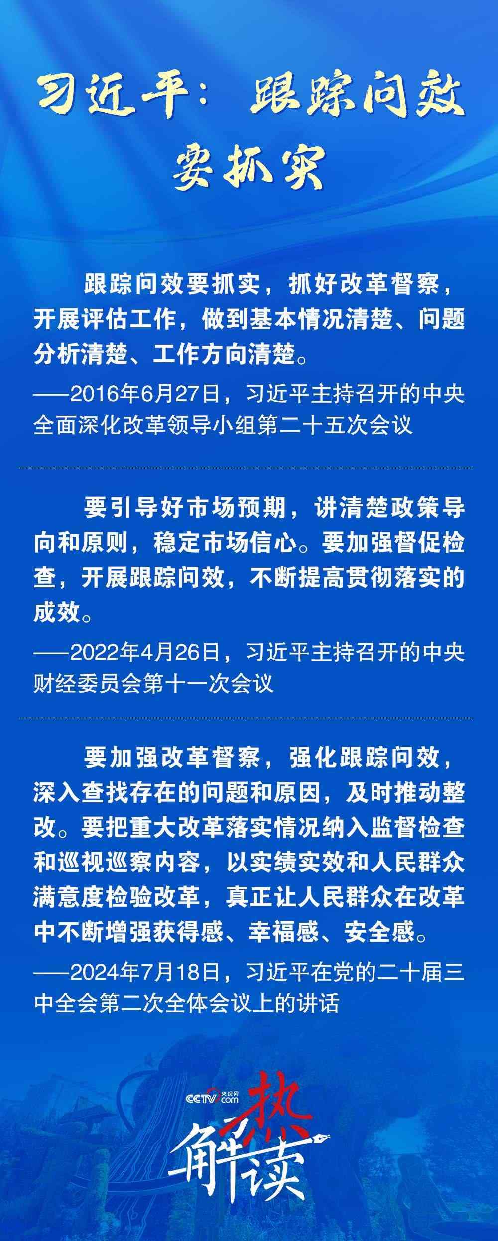 今年7月,在黨的二十屆三中全會第二次全體會議上,習近平總書記進一步提出,要強化跟蹤問效,深入查找存在的問題和原因,及時推動整改。