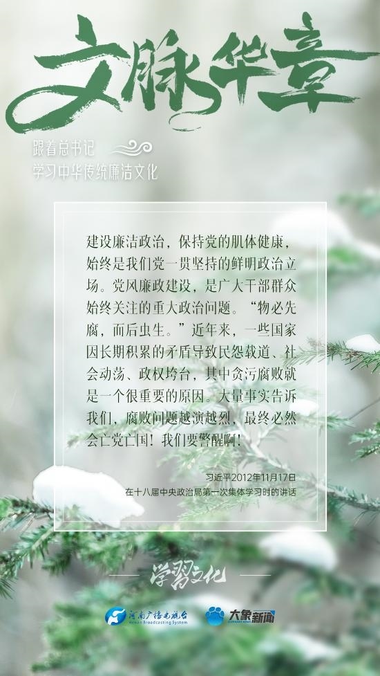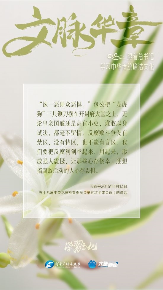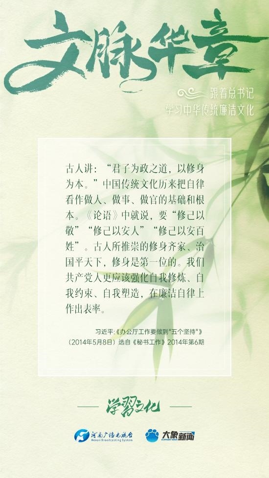 中華優(yōu)秀傳統(tǒng)文化蘊含著豐富的廉潔文化,習(xí)近平總書記曾指出:沒有中華優(yōu)秀傳統(tǒng)文化、革命文化、社會主義先進文化的底蘊和滋養(yǎng),信仰信念就難以深沉而執(zhí)著??倳洺3R?jīng)據(jù)典,教育引導(dǎo)廣大黨員干部正心修身,涵養(yǎng)文化,守住為政之本。大象新聞分五期為您梳理,我們一起跟著總書記學(xué)習(xí)中華傳統(tǒng)廉潔文化。今天推出第五期。