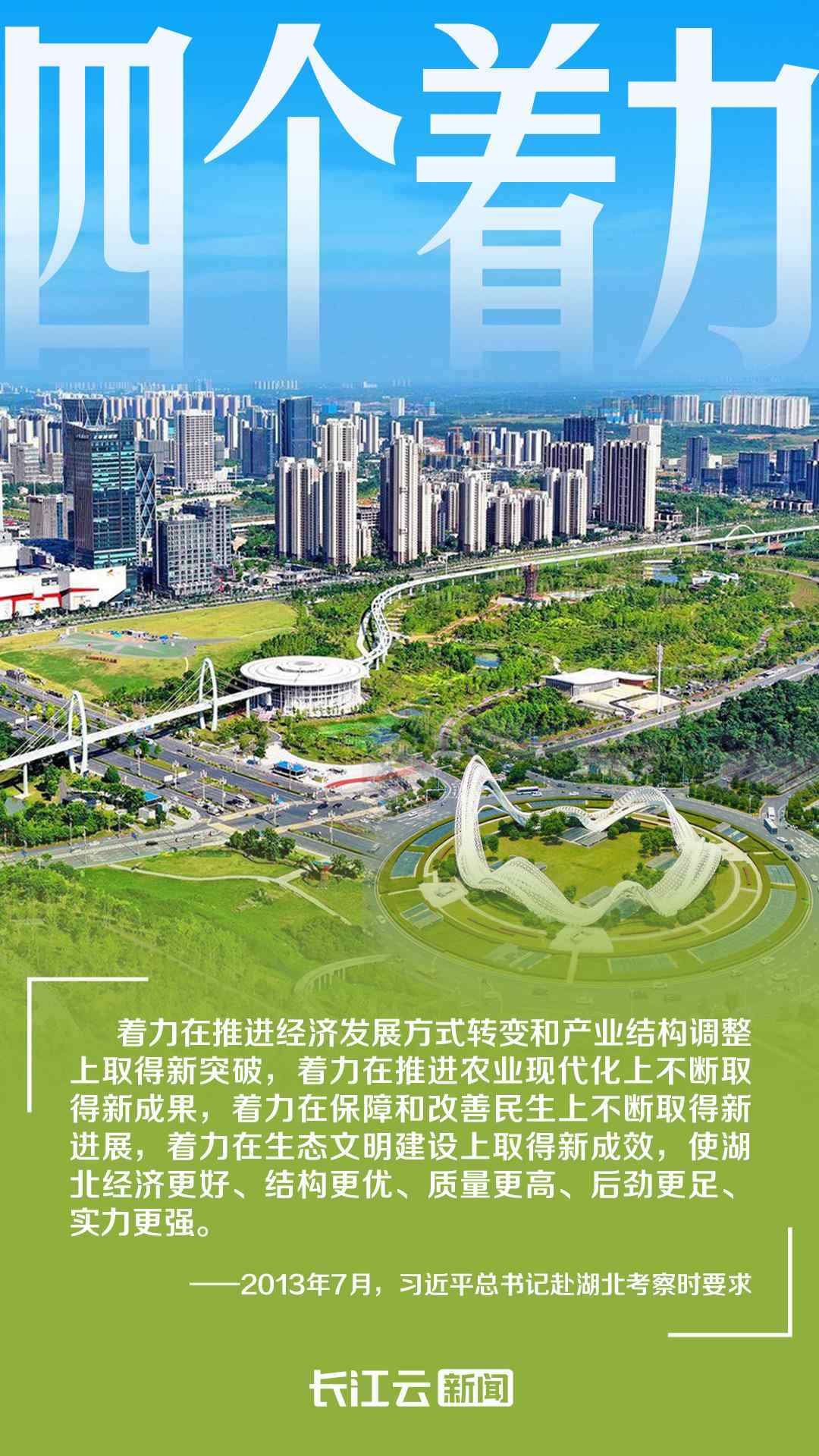 2013年7月,習(xí)近平總書記首次考察湖北時(shí)提出“四個(gè)著力”,要求“努力把湖北建設(shè)成為中部地區(qū)崛起重要戰(zhàn)略支點(diǎn)”“爭(zhēng)取在轉(zhuǎn)變經(jīng)濟(jì)發(fā)展方式上走在全國(guó)前列”。