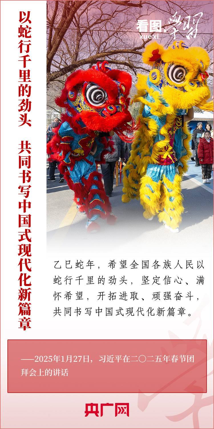 1月27日,中共中央、國務(wù)院在北京舉行春節(jié)團拜會,習(xí)近平總書記發(fā)表熱情洋溢的講話,向全國各族人民、港澳臺同胞、海外僑胞拜年并致以新春祝福??倳浽谥v話中深情回顧過去一年中國式現(xiàn)代化取得很不平凡的發(fā)展歷程,“希望全國各族人民以蛇行千里的勁頭,堅定信心、滿懷希望,開拓進取、頑強奮斗,共同書寫中國式現(xiàn)代化新篇章。”一起來學(xué)習(xí)!