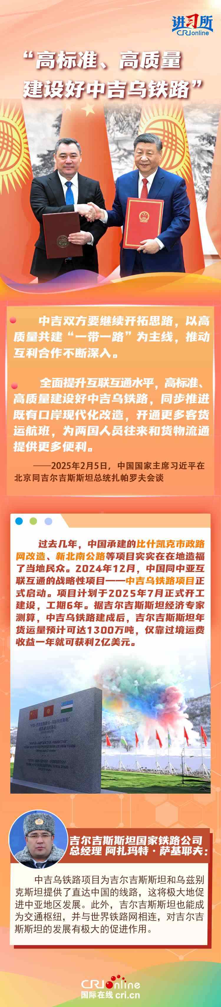 習(xí)近平主席在兩天四場(chǎng)雙邊外事活動(dòng)中,提到了多個(gè)高質(zhì)量共建“一帶一路”的旗艦項(xiàng)目——中吉烏鐵路、中巴經(jīng)濟(jì)走廊、中泰鐵路、廣西-文萊經(jīng)濟(jì)走廊……這一條條“幸福路”、一片片“發(fā)展帶”從無到有,從有到優(yōu),順應(yīng)了沿線各國(guó)人民過上更加美好幸福生活的人心,順應(yīng)了發(fā)展中國(guó)家實(shí)現(xiàn)各自現(xiàn)代化的共同期待,是中國(guó)支持高質(zhì)量共建“一帶一路”八項(xiàng)行動(dòng)的生動(dòng)實(shí)踐。