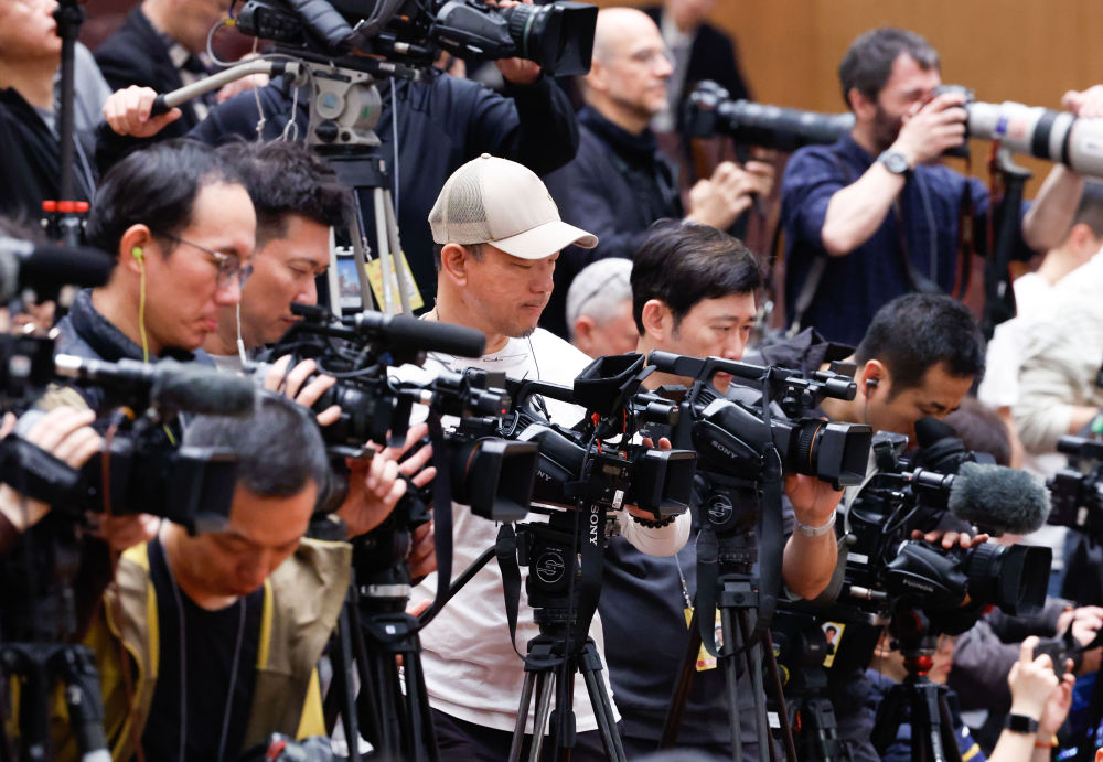 2025年3月10日,全國政協(xié)十四屆三次會(huì)議在北京人民大會(huì)堂舉行閉幕會(huì)。這是記者在會(huì)場采訪。新華社記者 張玉薇 攝