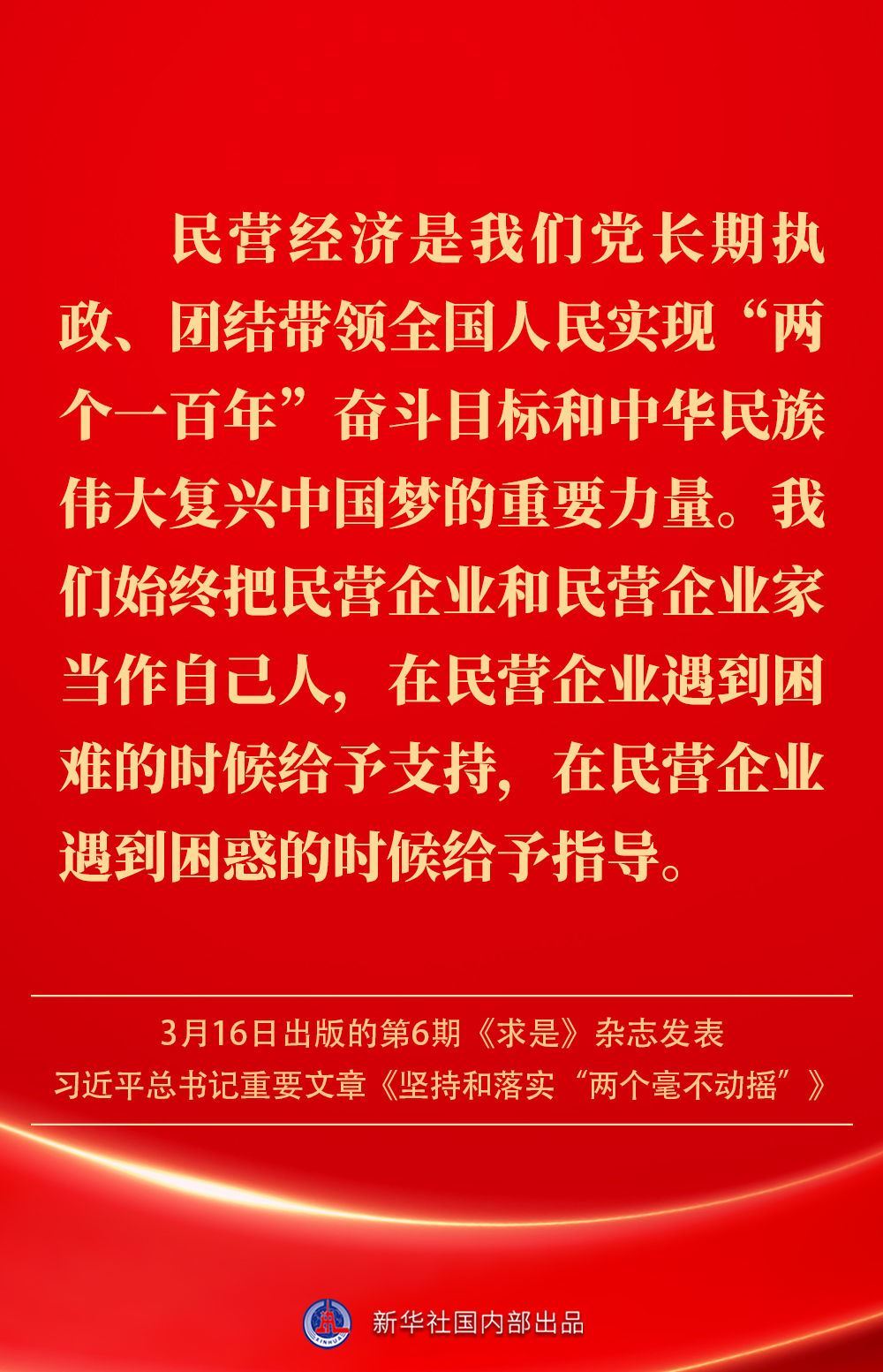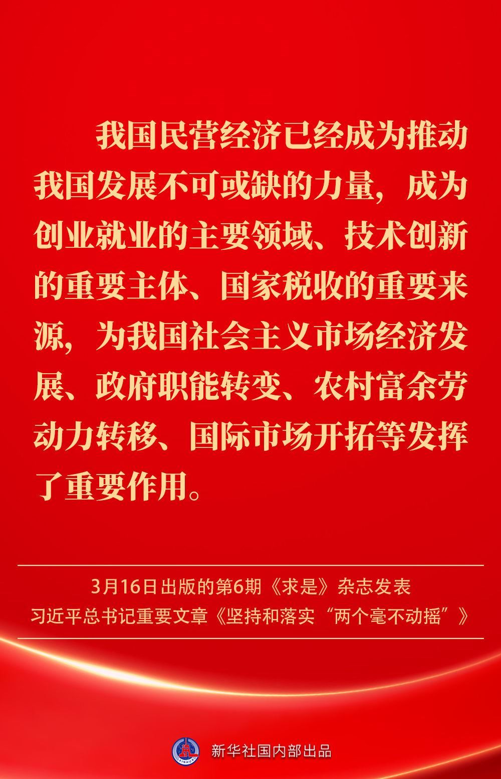 3月16日出版的第6期《求是》雜志發(fā)表習(xí)近平總書記重要文章《堅(jiān)持和落實(shí)“兩個(gè)毫不動(dòng)搖”》。這是習(xí)近平總書記2013年11月至2025年2月期間有關(guān)重要論述的節(jié)錄。如何認(rèn)識(shí)“兩個(gè)毫不動(dòng)搖”?公有制經(jīng)濟(jì)和非公有制經(jīng)濟(jì)是怎樣的關(guān)系?習(xí)近平總書記這樣闡述——