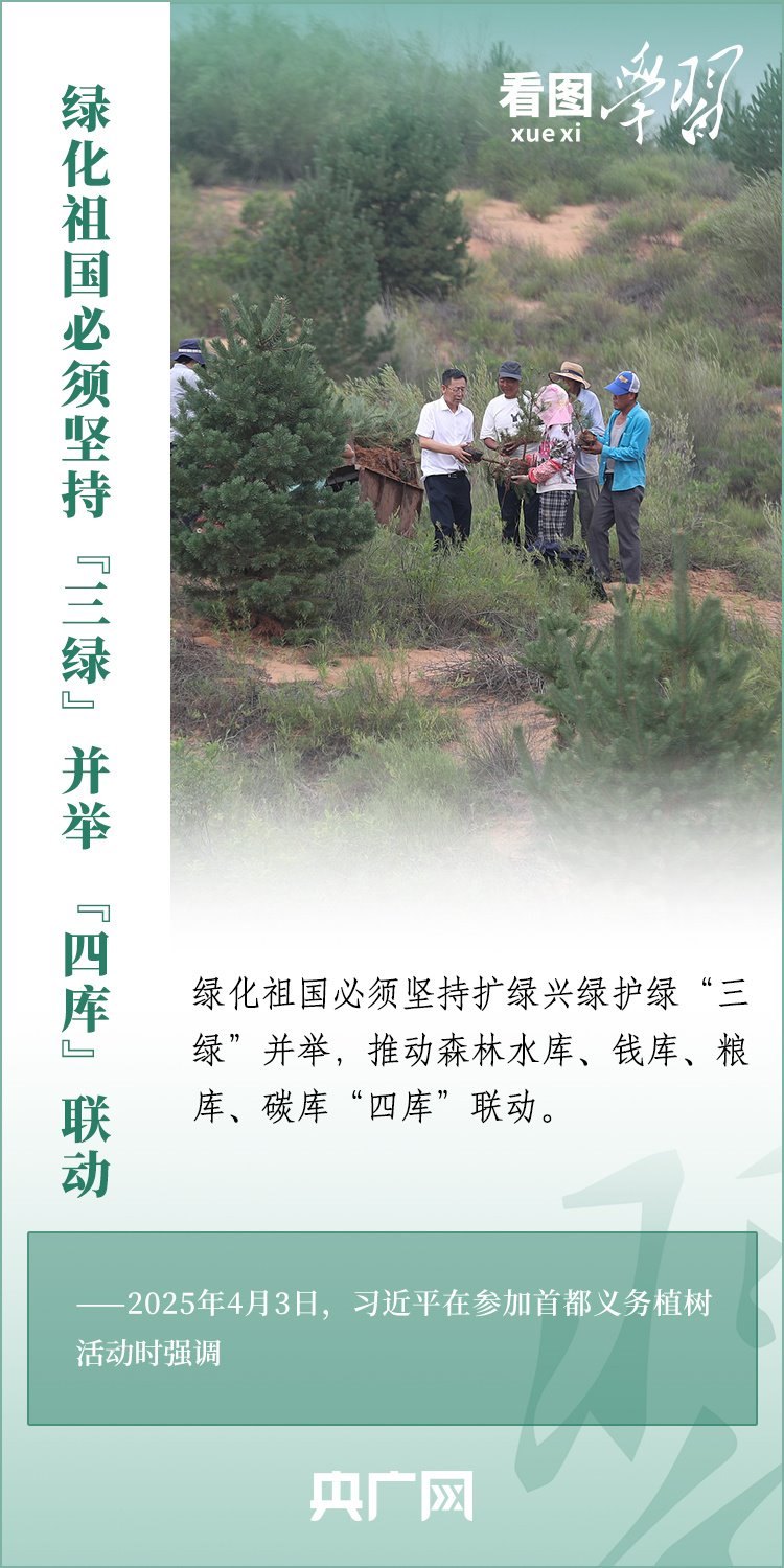 植樹(shù)造林是生態(tài)文明建設(shè)重要一環(huán)。4月3日,習(xí)近平總書(shū)記參加首都義務(wù)植樹(shù)活動(dòng)。在植樹(shù)現(xiàn)場(chǎng),總書(shū)記高度肯定國(guó)土綠化工作取得來(lái)之不易的成績(jī),強(qiáng)調(diào)綠化祖國(guó)必須堅(jiān)持“三綠”并舉、“四庫(kù)”聯(lián)動(dòng),要更加注重“提質(zhì)”“興業(yè)”“利民”,“匯聚共建美麗中國(guó)的磅礴力量,讓祖國(guó)大地更加綠意盎然、生機(jī)勃發(fā)”。一起來(lái)學(xué)習(xí)!