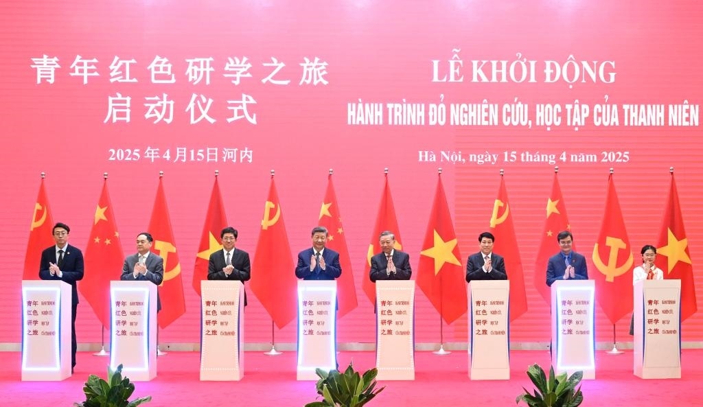 活動前,習近平在蘇林、梁強陪同下,觀看了中越建交75周年圖片展,重溫中越雙方友好交往的珍貴畫面。