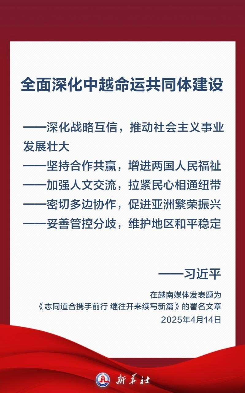 中共中央總書(shū)記、國(guó)家主席習(xí)近平4月14日至15日對(duì)越南進(jìn)行國(guó)事訪問(wèn)。此訪適逢中越建交75周年,對(duì)兩國(guó)關(guān)系具有承前啟后、繼往開(kāi)來(lái)的重大意義。