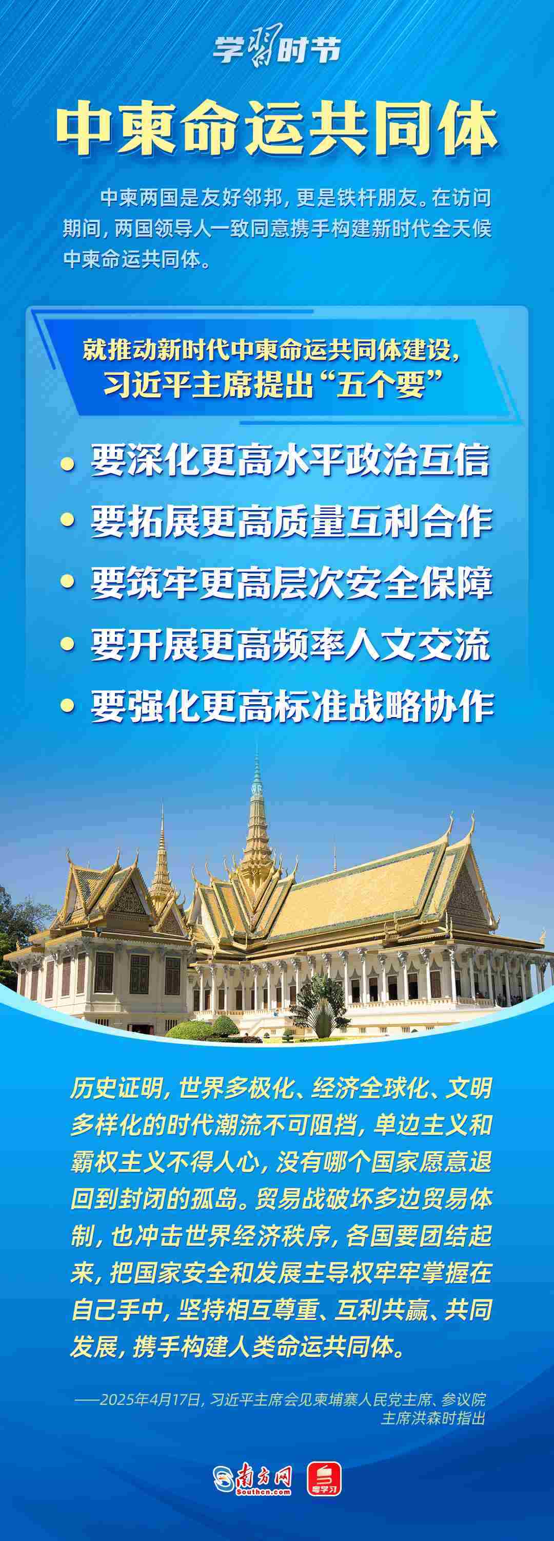 日前,中央周邊工作會(huì)議召開,強(qiáng)調(diào)要聚焦構(gòu)建周邊命運(yùn)共同體,努力開創(chuàng)周邊工作新局面。4月14日至18日,習(xí)近平主席出訪東南亞三國(guó)——越南、馬來(lái)西亞、柬埔寨。這是習(xí)近平主席今年首次出訪,對(duì)推動(dòng)中國(guó)同三國(guó)關(guān)系發(fā)展具有重大意義,也為周邊命運(yùn)共同體建設(shè)擘畫了新藍(lán)圖。
