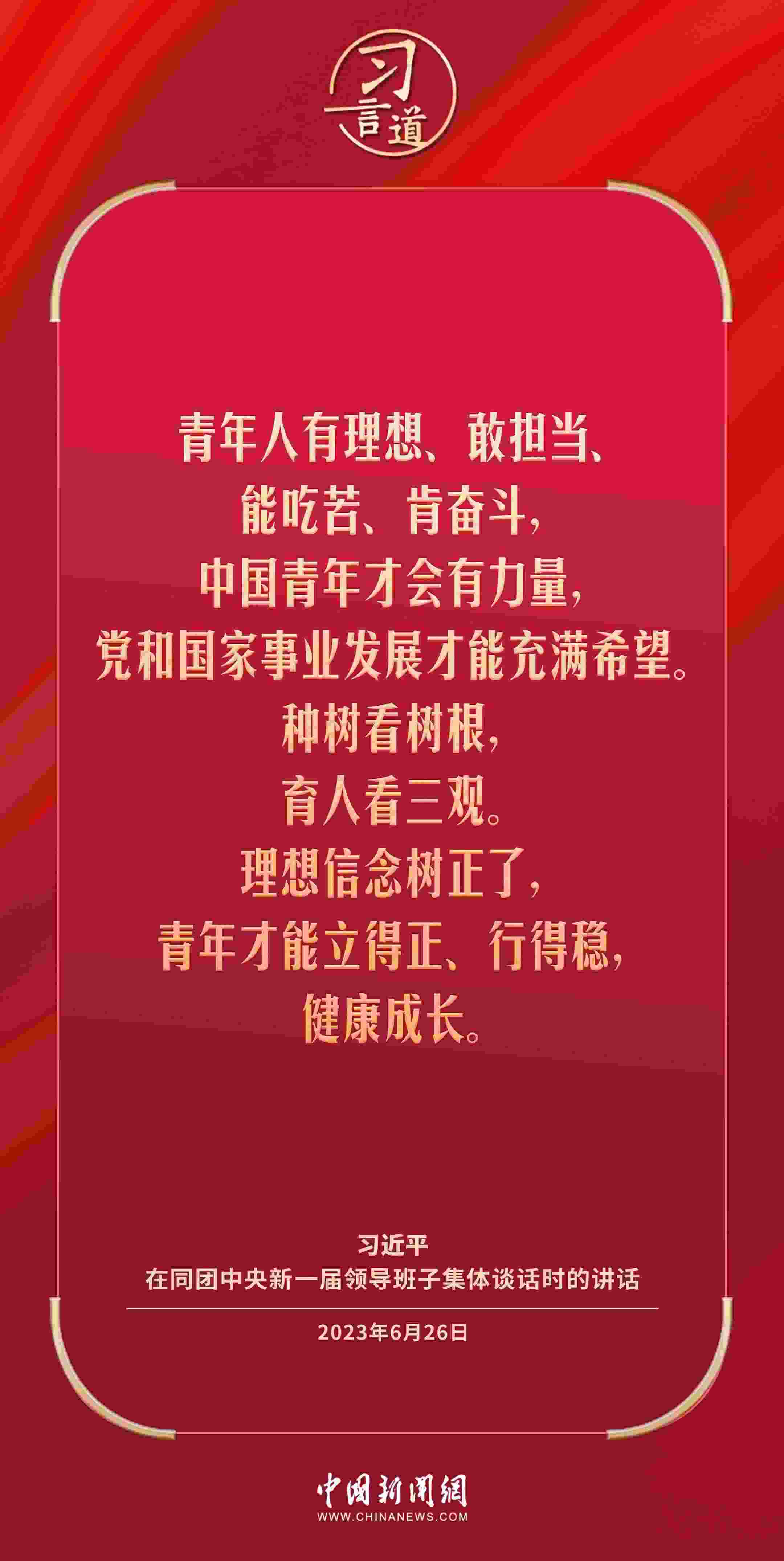 5月1日出版的《求是》雜志發(fā)表中共中央總書記、國(guó)家主席、中央軍委主席習(xí)近平的重要文章《激勵(lì)新時(shí)代青年在中國(guó)式現(xiàn)代化建設(shè)中挺膺擔(dān)當(dāng)》。這是習(xí)近平總書記2023年6月26日在同團(tuán)中央新一屆領(lǐng)導(dǎo)班子集體談話時(shí)講話的主要部分。