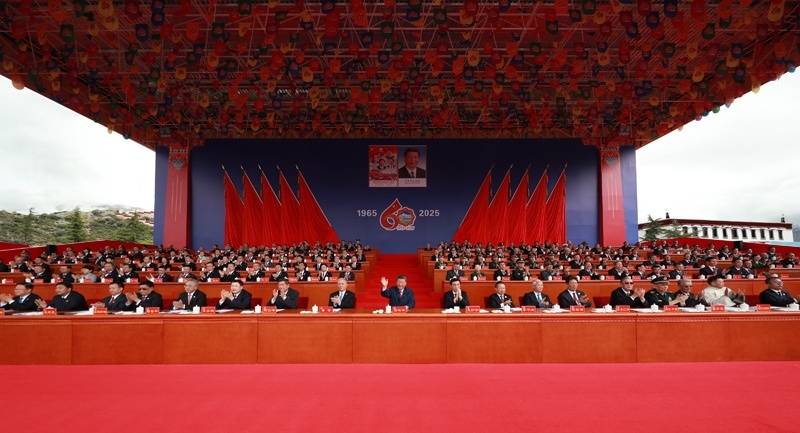 8月21日上午,西藏各族各界干部群眾約2萬(wàn)人歡聚拉薩市布達(dá)拉宮廣場(chǎng),熱烈慶祝西藏自治區(qū)成立60周年。中共中央總書(shū)記、國(guó)家主席、中央軍委主席習(xí)近平出席慶祝大會(huì)。王滬寧、蔡奇出席大會(huì)。