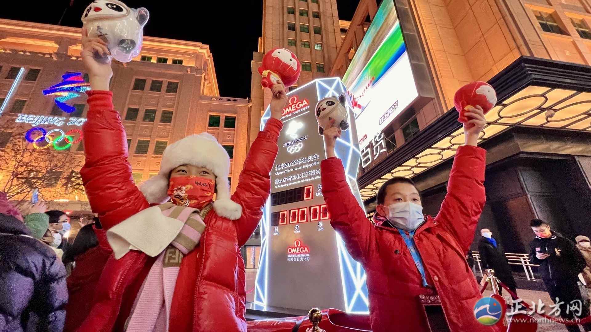 2月4日晚,北京王府井步行街,市民游客一起喜迎北京冬奧會開幕。(記者牛天甲)
