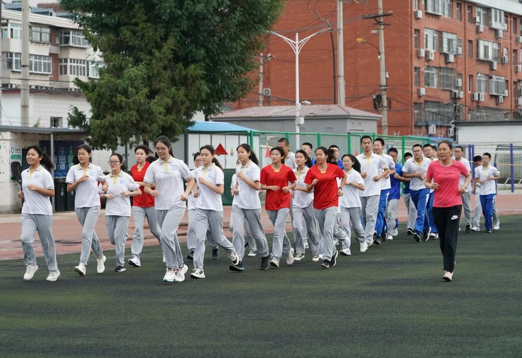 6月13日,在北京市平谷區(qū)第三中學(xué),初三學(xué)生在上體育課。新華社記者任超攝