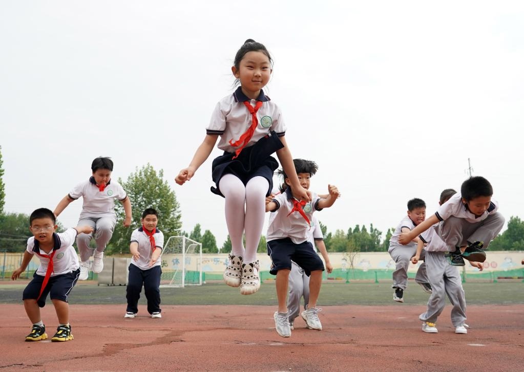 6月27日,在北京第二實驗小學(xué)平谷分校,二年級(2)班的學(xué)生上體育課。新華社記者任超攝