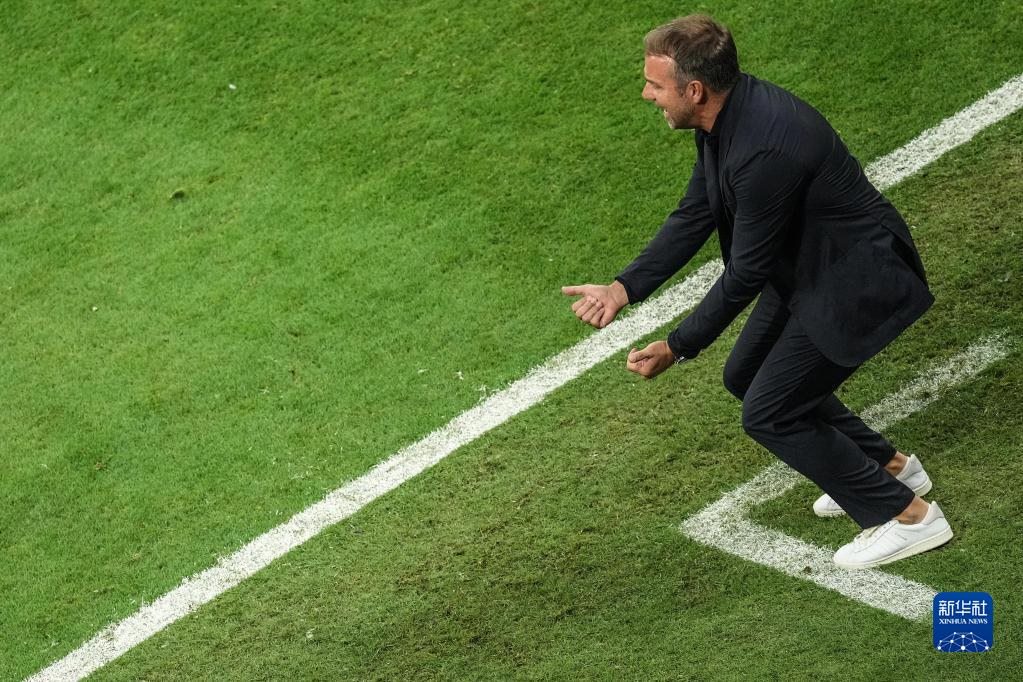11月27日,德國隊主教練漢斯·弗利克在場邊指揮。