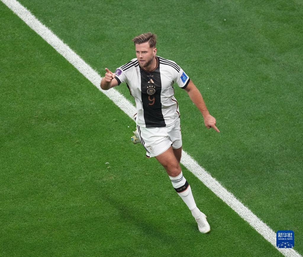 11月27日,德國隊球員尼克拉斯·菲爾克魯格在比賽中進球后慶祝。新華社記者 陳誠 攝