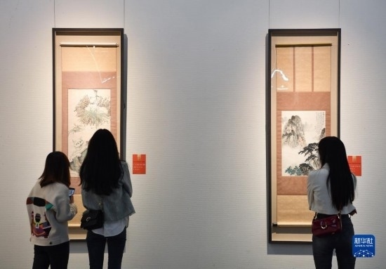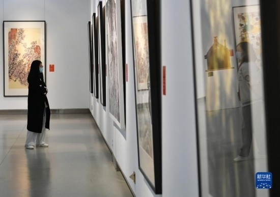 4月6日,觀眾在長安畫派藝術中心觀賞美術作品。