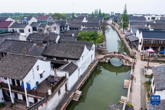 4月11日拍攝的織里鎮(zhèn)義皋村古村落景區(qū)(無人機(jī)照片)。