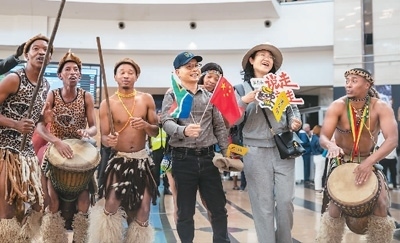 中國旅游團(tuán)抵達(dá)南非,南非旅游局在機(jī)場(chǎng)舉行歡迎儀式。 新華社記者 張譽(yù)東攝