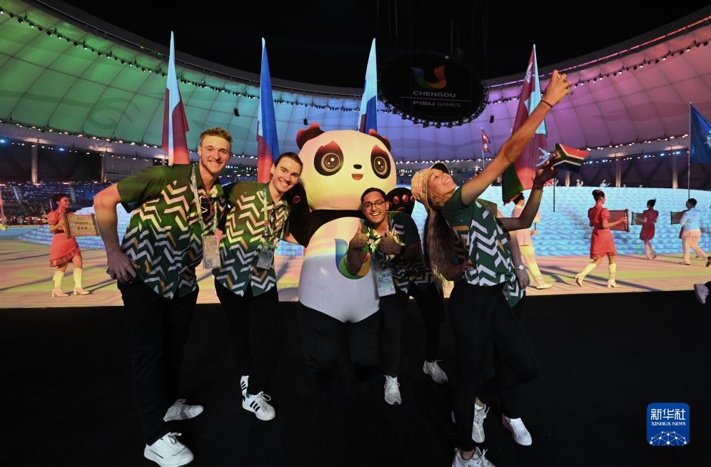 7月28日,中國(guó)大學(xué)生體育代表團(tuán)在開幕式上入場(chǎng)。