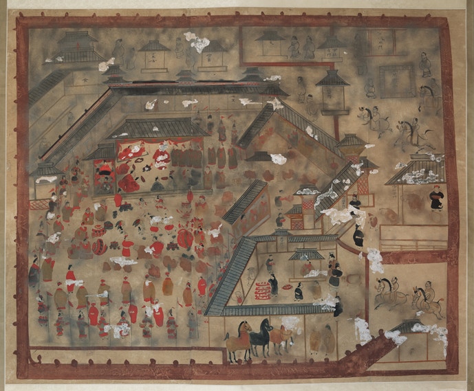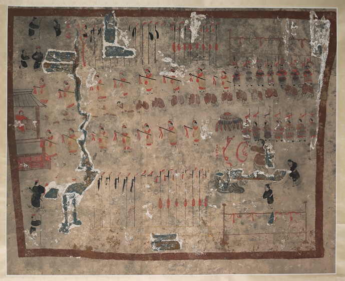 他,眼神堅(jiān)定,峨冠博帶,身著華服位于畫(huà)面中央,周?chē)屑柴Y的駿馬、彪悍的武士、精彩奇絕的樂(lè)舞百戲……這些畫(huà)面看上去遙遠(yuǎn)而陌生。