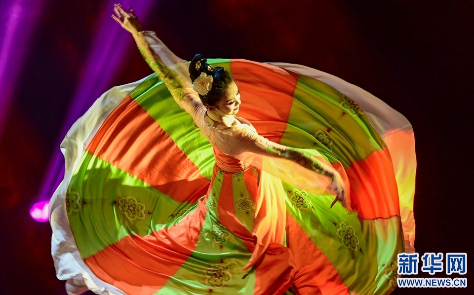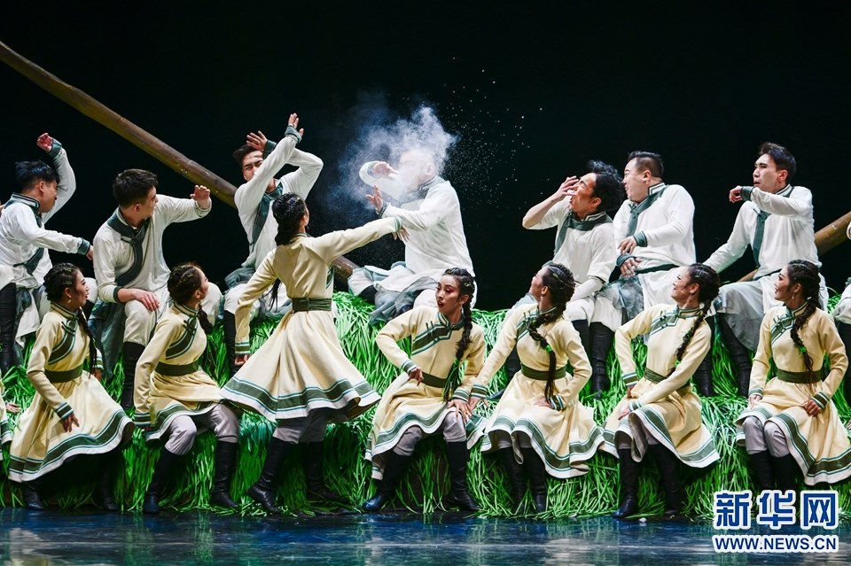 1月12日,演員在2022年內(nèi)蒙古新年舞蹈晚會(huì)中表演舞蹈《各族兒女行進(jìn)在陽(yáng)光里》。新華網(wǎng)發(fā)(王正攝)