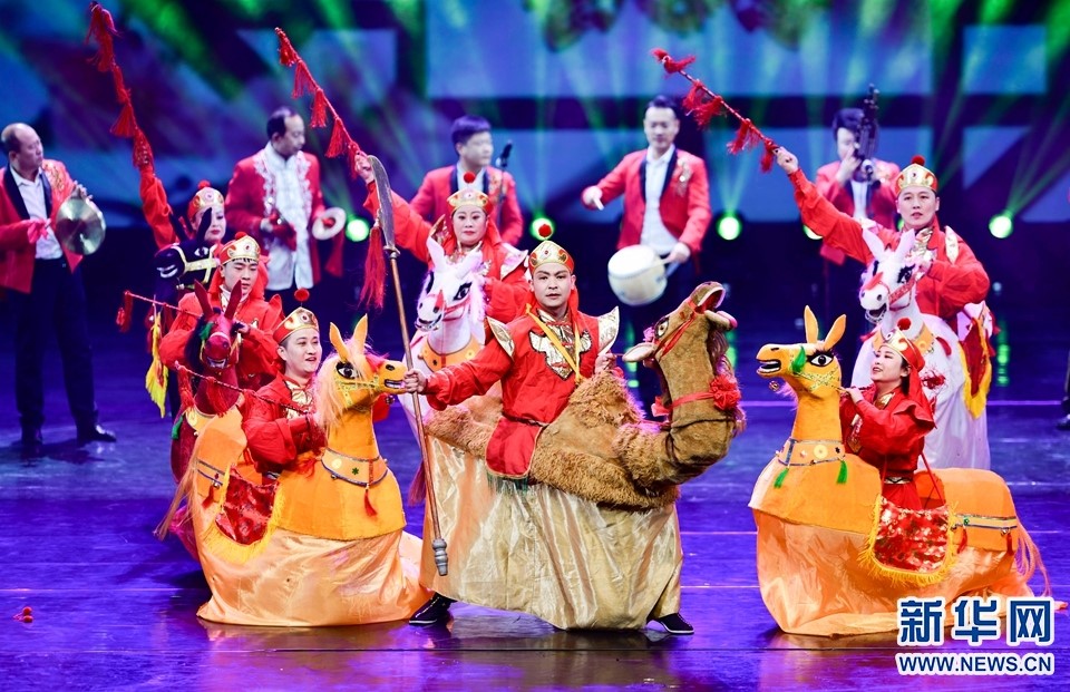 1月12日,演員在2022年內(nèi)蒙古新年舞蹈晚會(huì)中表演民間社火《雙墻秧歌》。新華網(wǎng)發(fā)(王正攝)